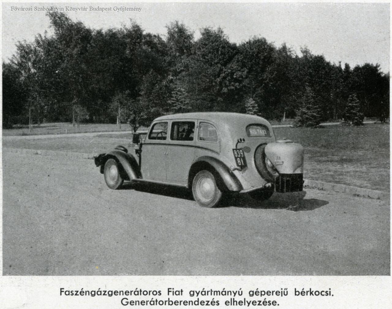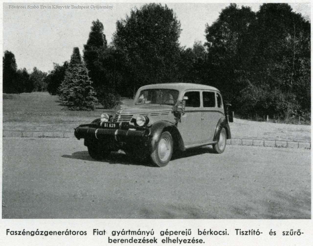Faszéngenerátoros Fiat gyártmányú géperejű bérkocsi
