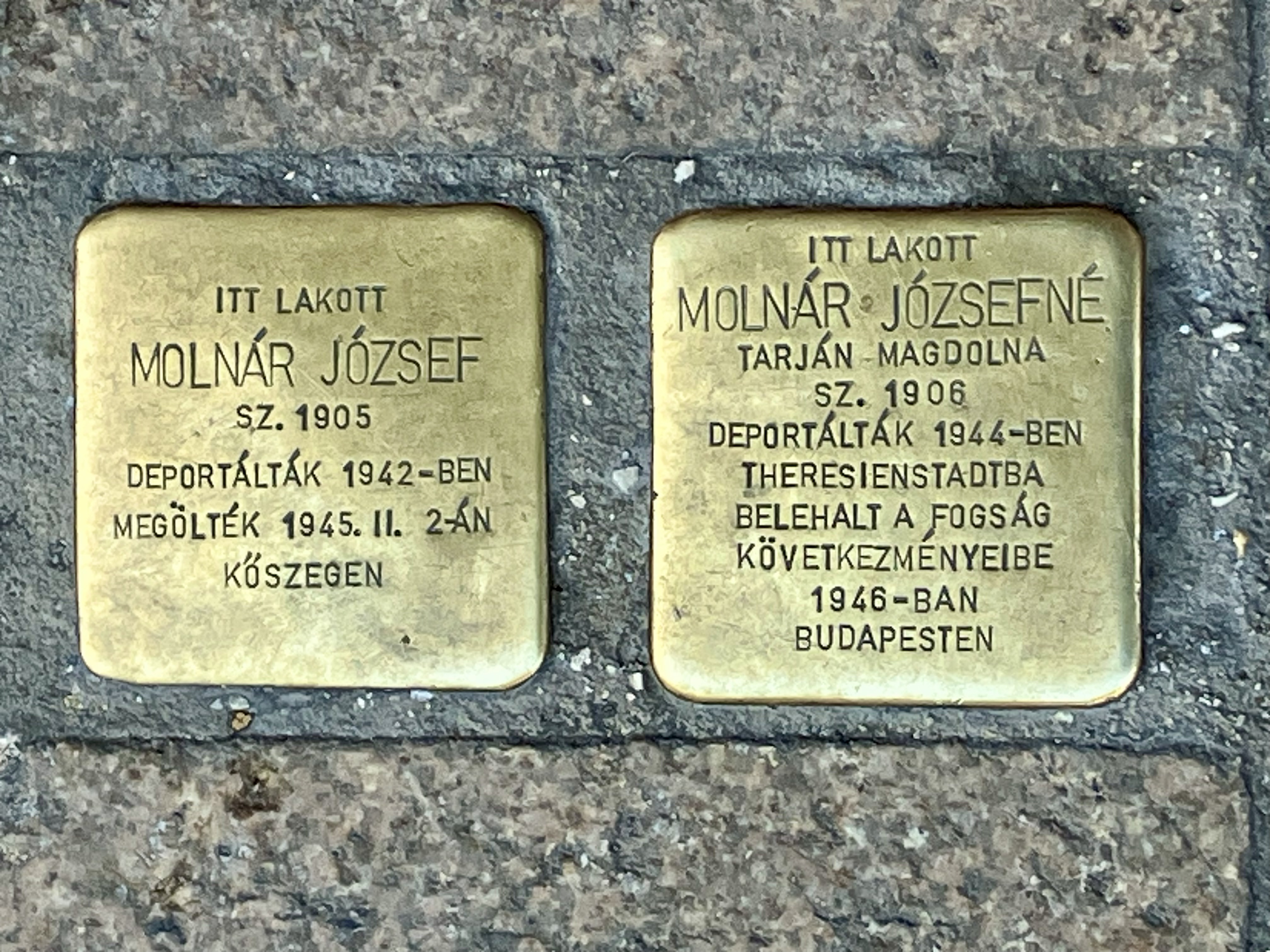 Szerettem volna többet megtudni a Molnár házaspárról. Ekkor egyre több furcsaságra lettem figyelmes, megoldásukra jóval hosszabb detektív kutatómunkára lenne szükség. Először is ellentmondásosnak tűnik a köveken található szöveg: „Molnár Józsefet 1942-ben deportálák és Kőszegen megölték 1945. február 2-án.” Ám 1942-ben amikor a haláltáborokba deportálások kezdődtek, akkor Lengyelországból és Szlovákiából vittek el zsidókat, nem Magyarországról. Magyarországról csak a német megszállás után, 1944-től. Halálának helyéből pedig az a valószínűség vonható le, hogy Molnár József munkaszolgálatos lehetett. Ez a magyar hadsereg egyik intézménye volt a háború alatt: zsidó és más, megbízhatatlan férfiakat fegyvertelen katonai szolgálatra hívtak be, és kemény fizikai munkára kötelezték őket. (Árokásás, bányamunka). A frontra nem kerültek, velük többnyire az őket irányító magyar altisztek, vagy a seregben dívó járvány, a flekktífusz végzett. Mindez spekuláció, kutatómunkát igényel.