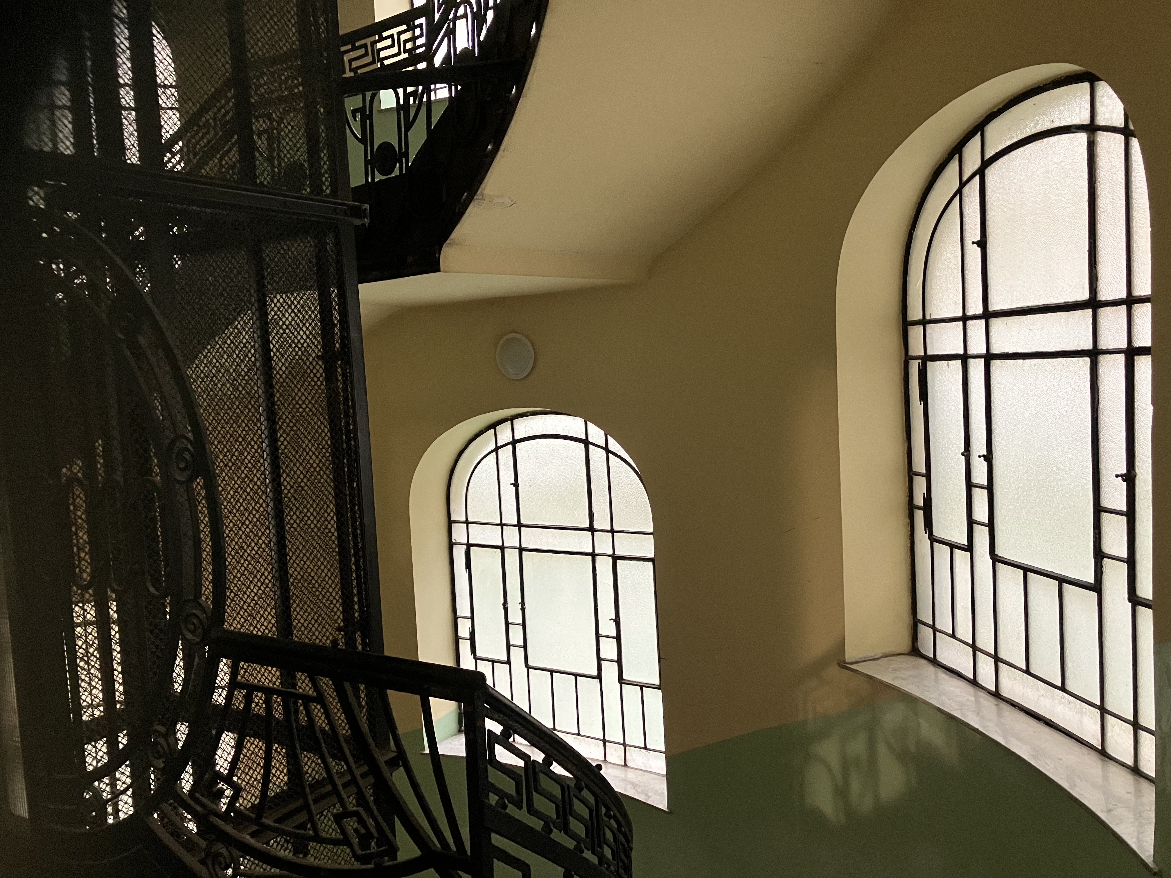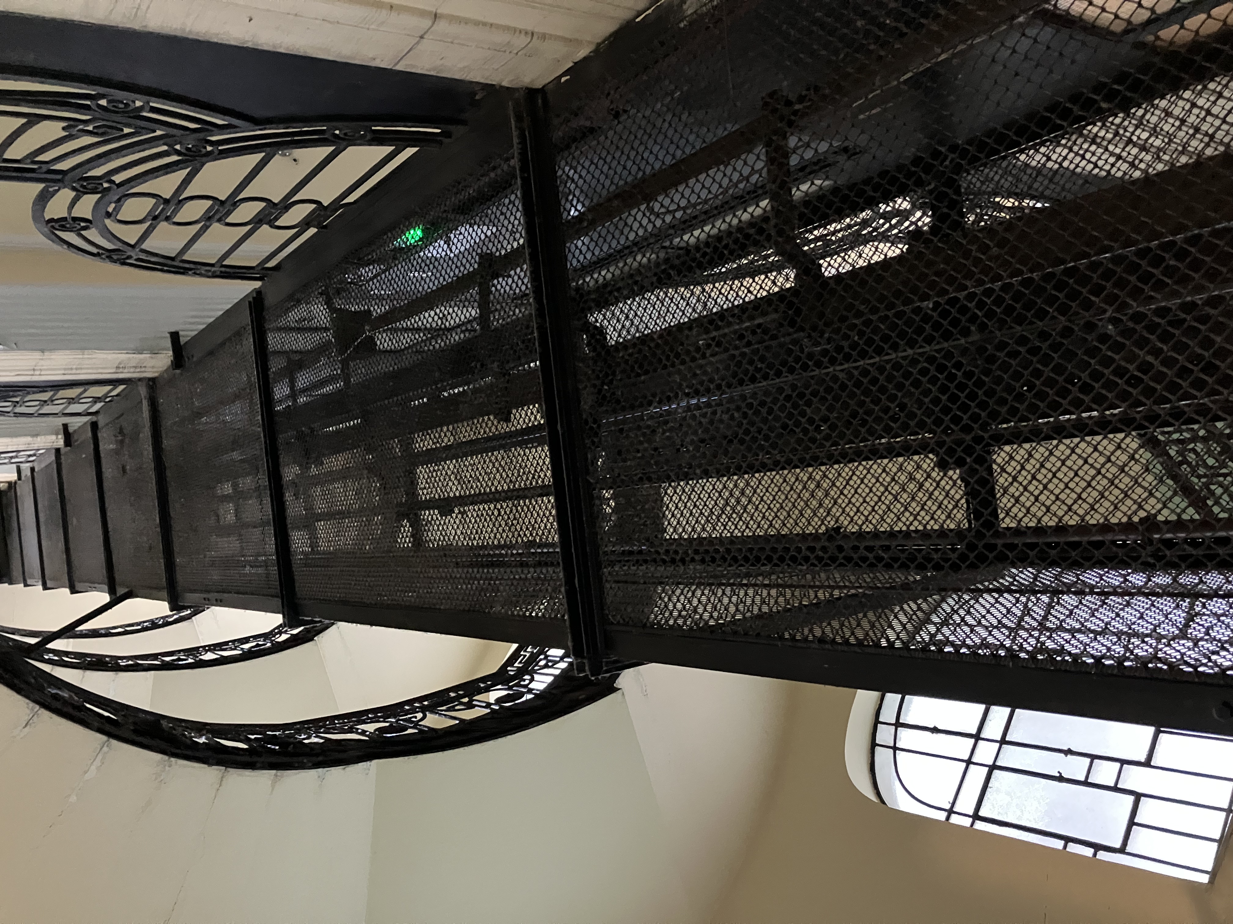 A lépcsőház vaskorlátai és díszítésük egy pompásan megtervezett, 100 évvel ezelőtti iparosmunka szépségét sugalja a maga formáival, indáival, kovácsolt virágaival.