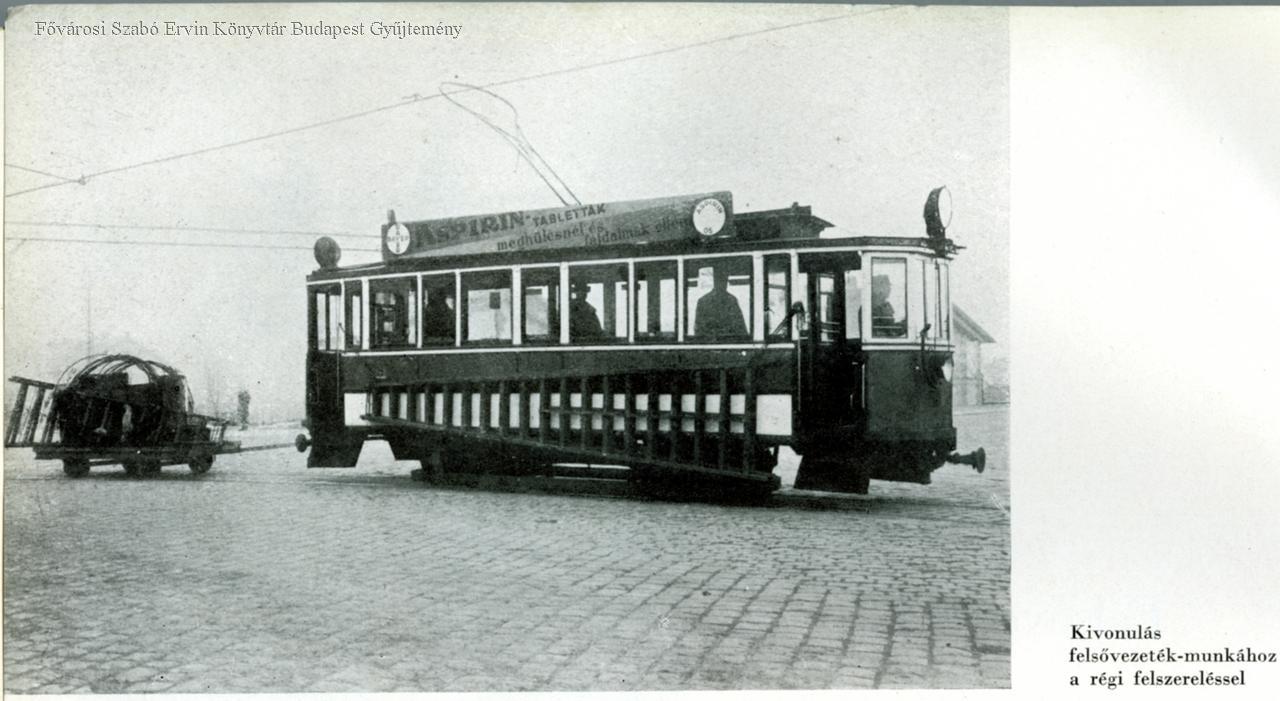 közúti villamos közlekedés, felső vezeték, szerelés, külső felvétel, 1934