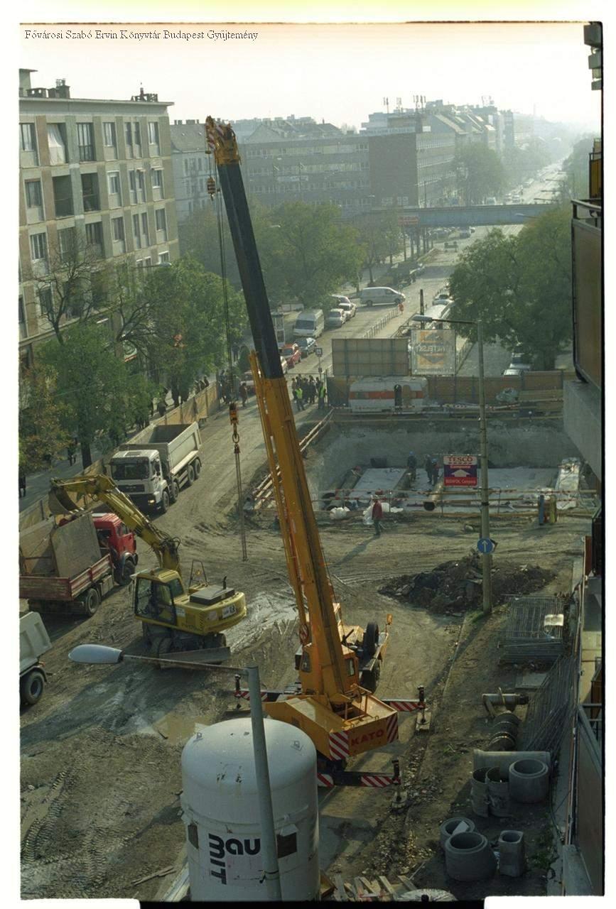 külső felvétel, épületkép, utcakép, metróállomás, építés, daru, munkagép, 2000-es évek