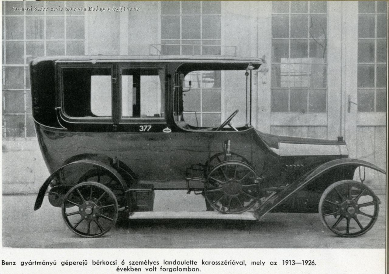Benz gyártmányú géperejű bérkocsi 6 személyes landualette karosszériával, mely 1913-1926. években volt forgalomban