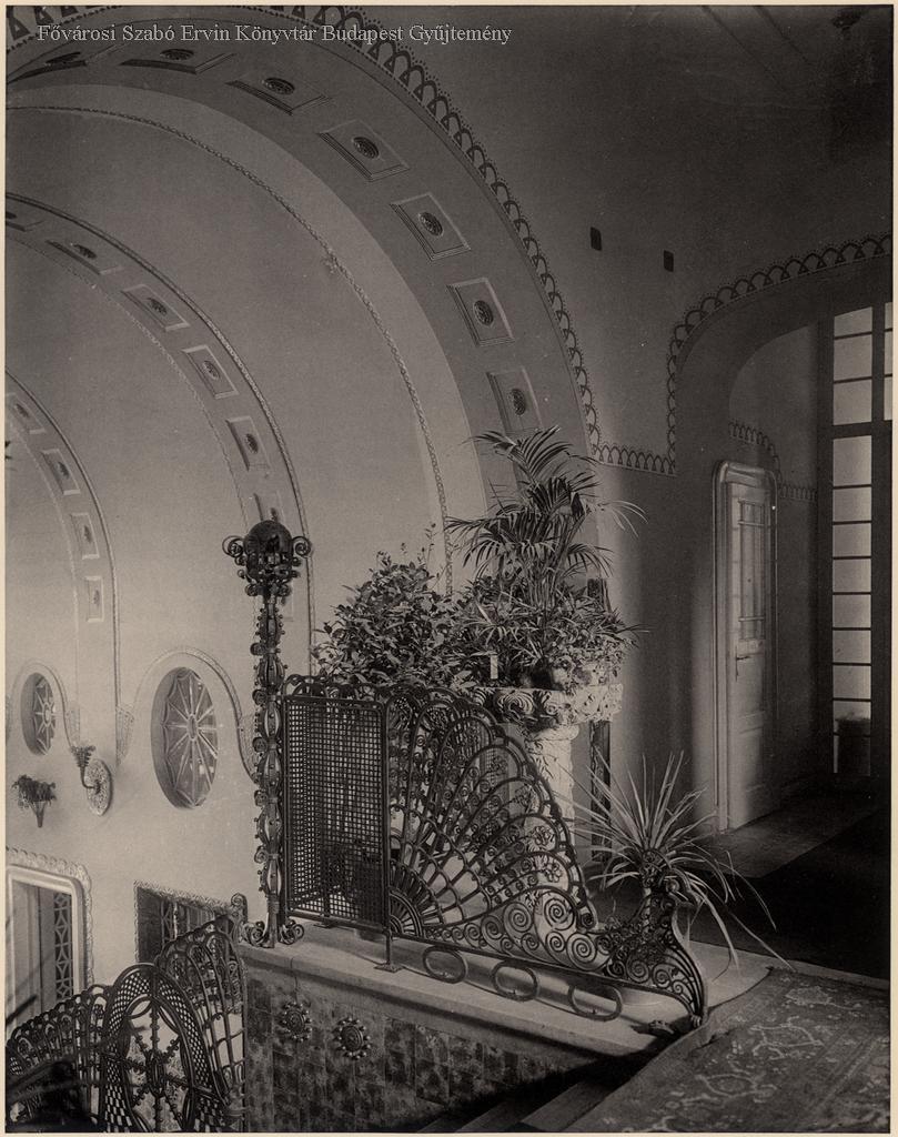 szanatórium, lépcsőház, dísznövény, vasművesség, épületkép, belső felvétel, 1910 körül