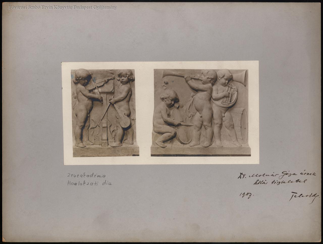 díszítés, zeneoktatás, dombormű, hangszer, tárgyfelvétel, 1907