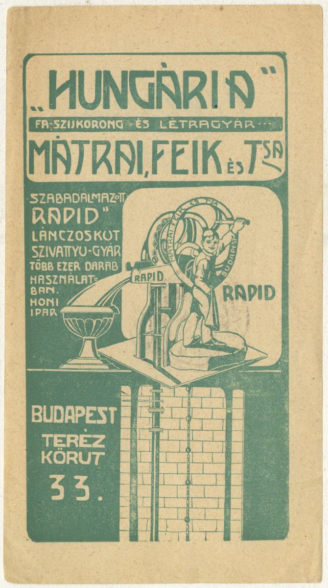 Cégnév:Hungária Fa- Szíjkorong és Létragyár Rapid Láncos kút Szivattyú-gyár