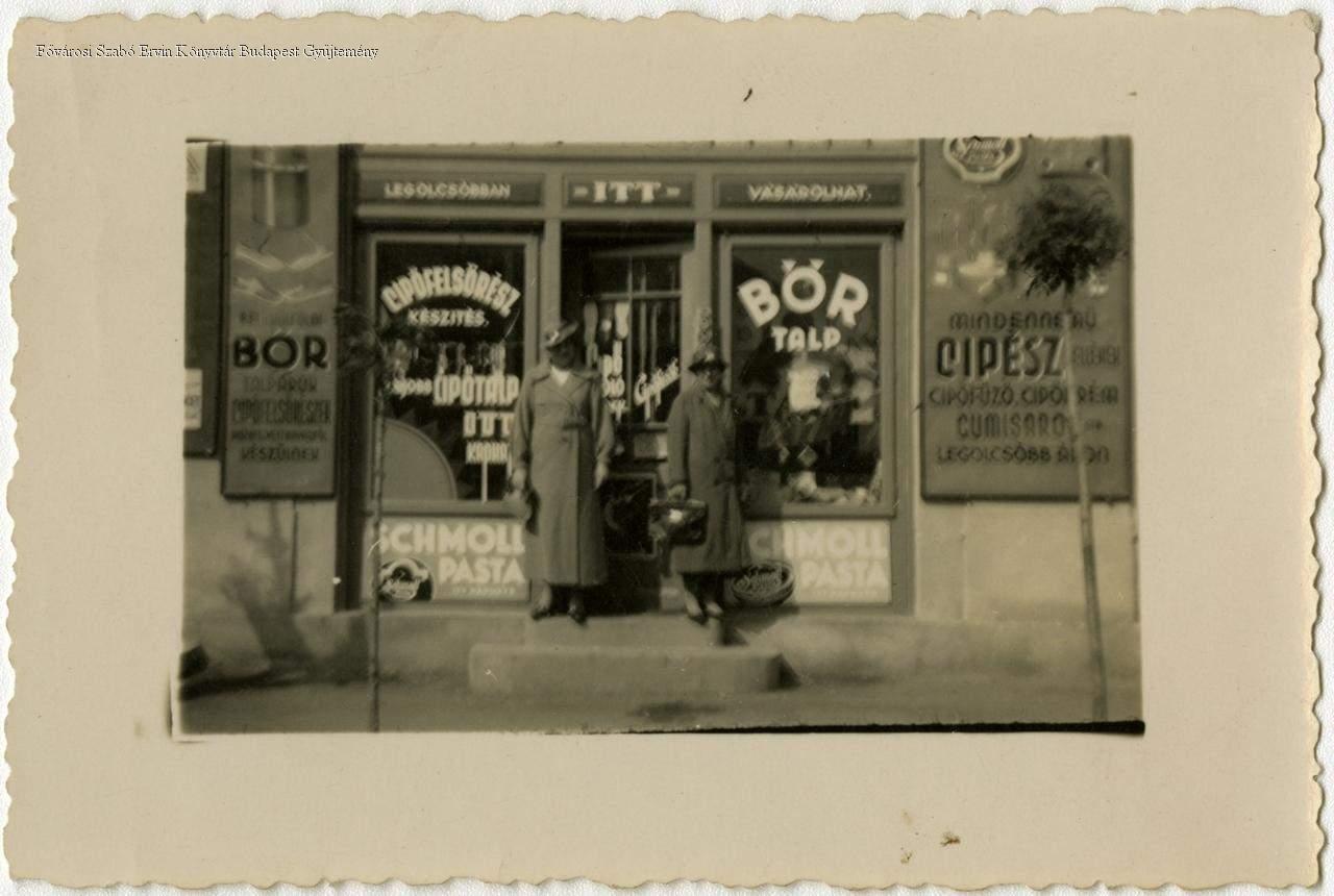 cipőipar, cipőjavítás, cipőipari kellék, kereskedő, kiskereskedő, üzlet, műhely, 1930-as, 1940-es évek