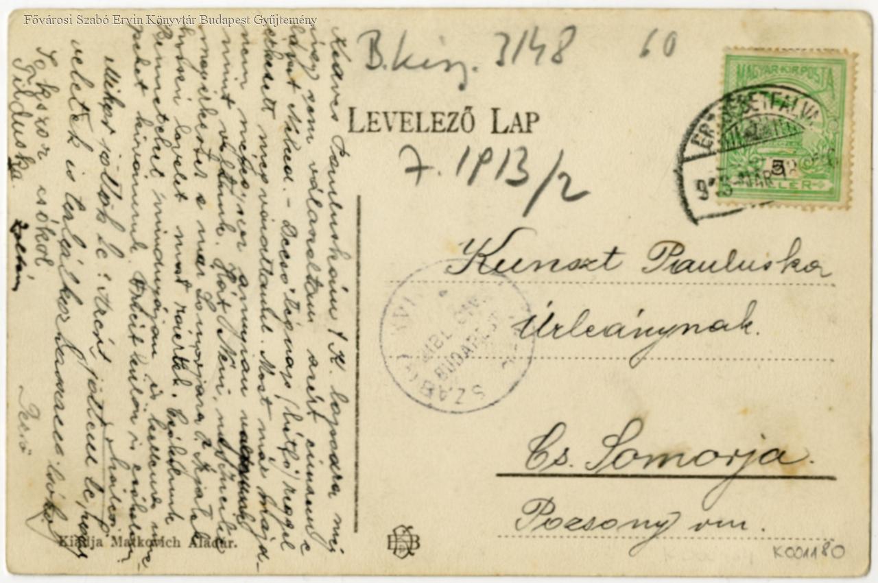 Futott: 1913. elmosódott bélyegző