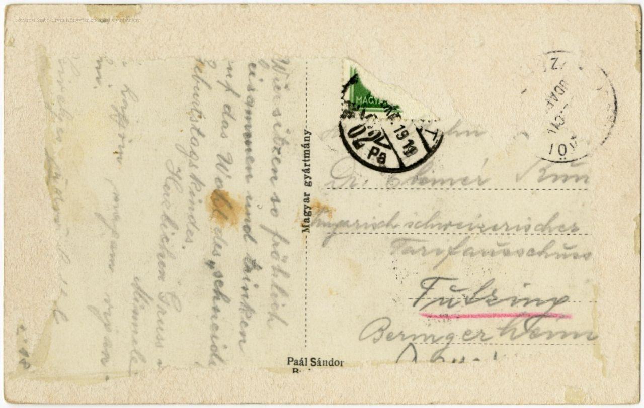 Felirat a képeslap hátoldalán: Magyar gyártmány