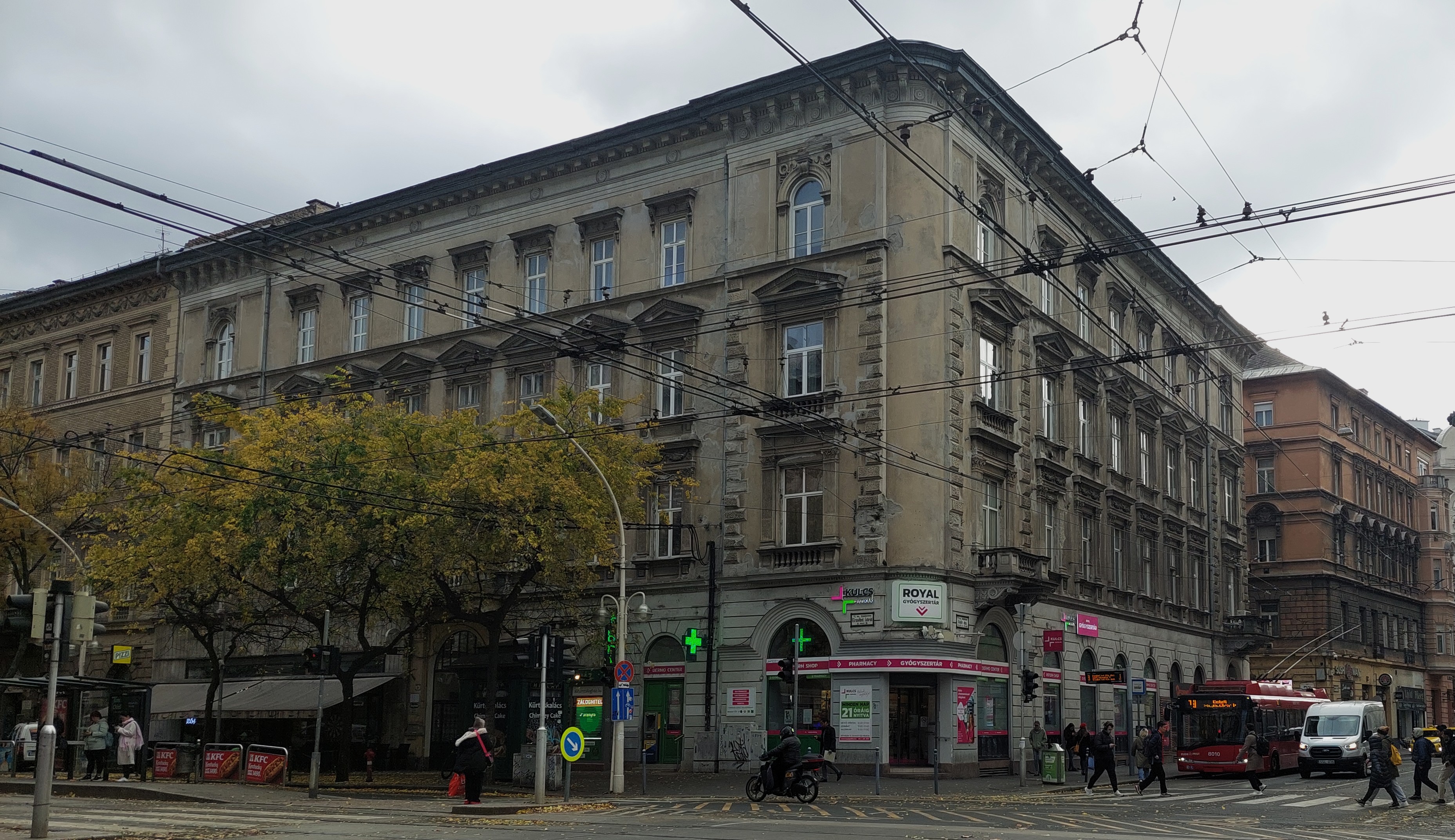 Átlagos állapotú. Földszintjén jelenleg a Royal Gyógyszertár található.
