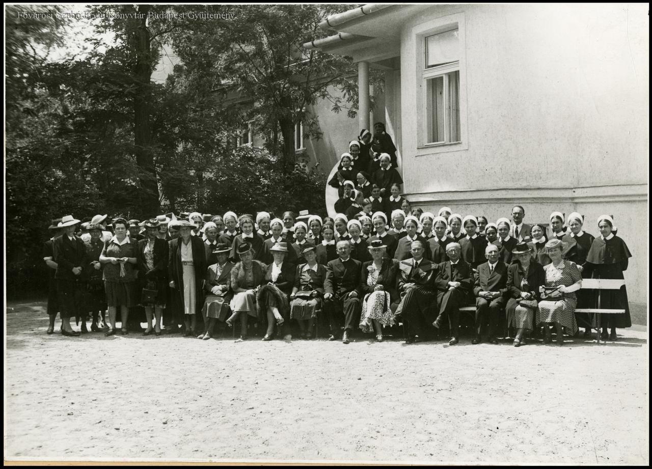 [Csoportkép a Lórántffy Zsuzsanna Egyesület kórházának udvarán]