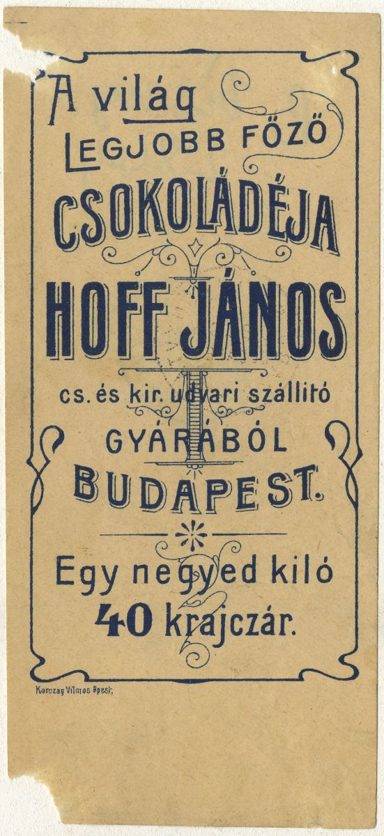 A világ legjobb főző csokoládéja (...) Egy negyed kiló 40 krajcár.