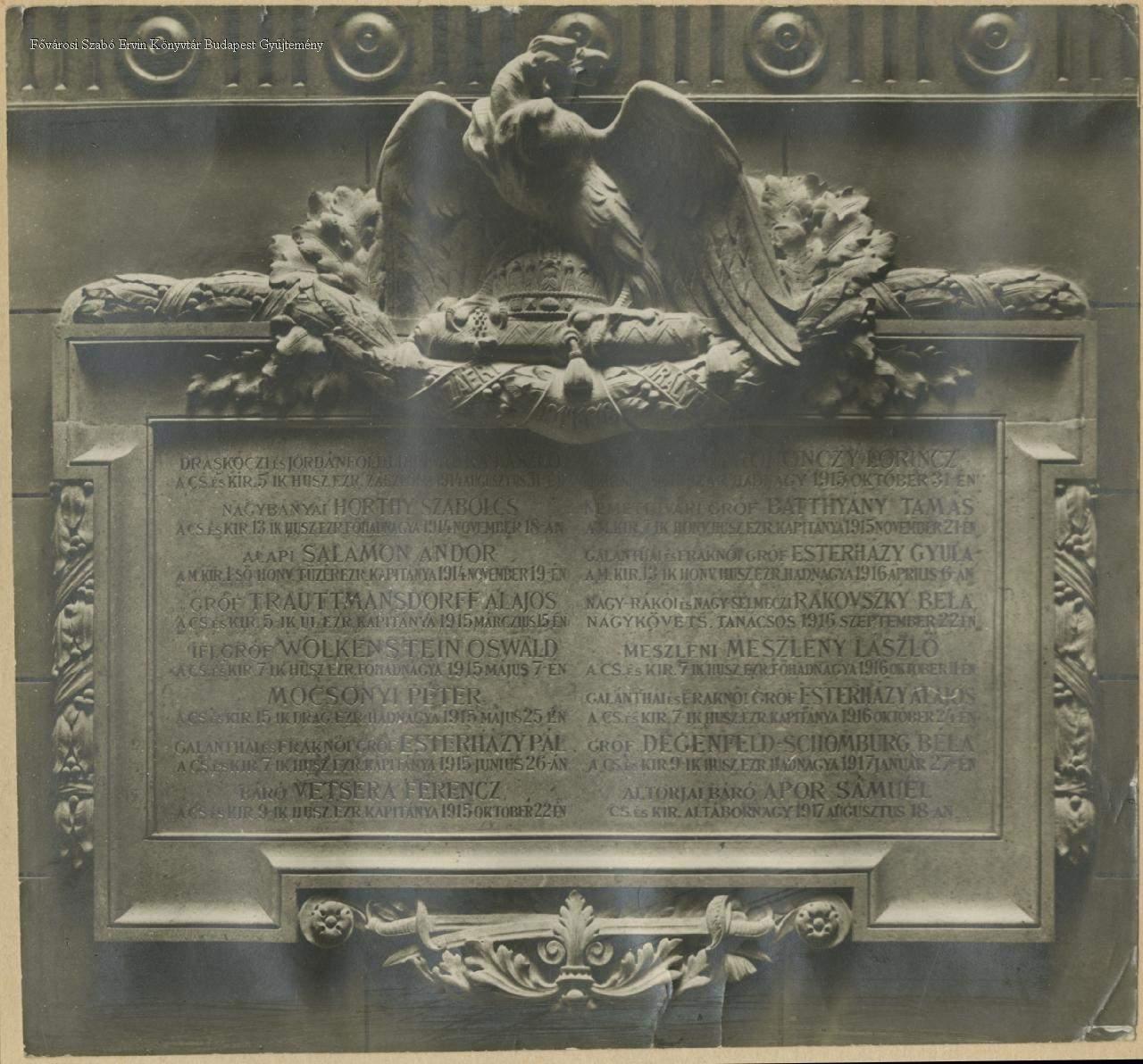emléktábla, első világháború, dombormű, kaszinó, koronázási jelvény, állami jelkép, állatábrázolás, sas, 1920-as évek