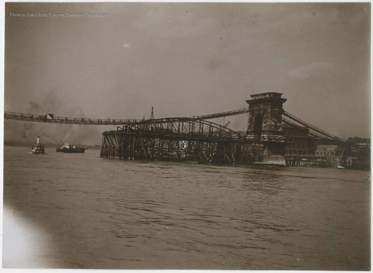 A Lánchíd átépítése, vasszerkezetének megerősítése. Teljes rekonstrukció: 1914. február 3-tól 1915. november 26-ig.