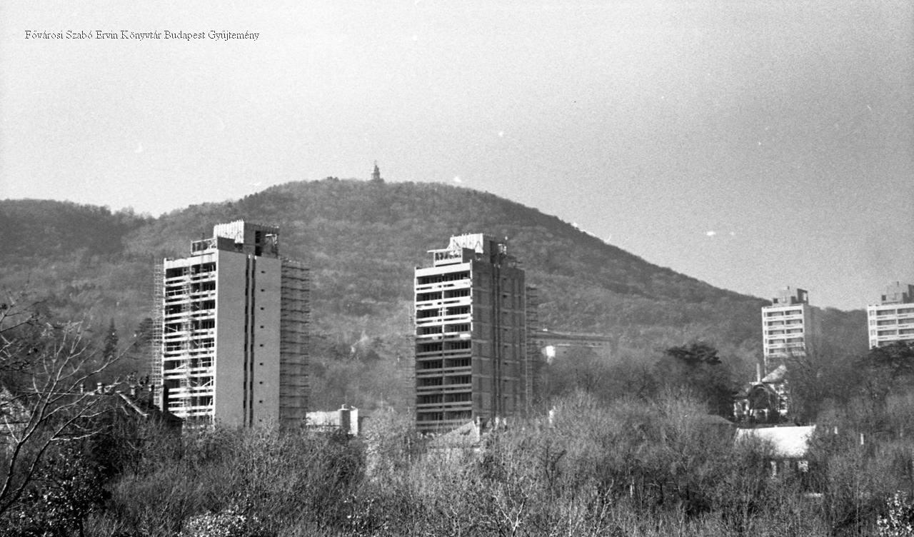 [Magasházak a 2. kerület Hárshegyi út, Pálos utca és Budakeszi út között, háttérben a Jánoshegyi Erzsébet-kilátó]