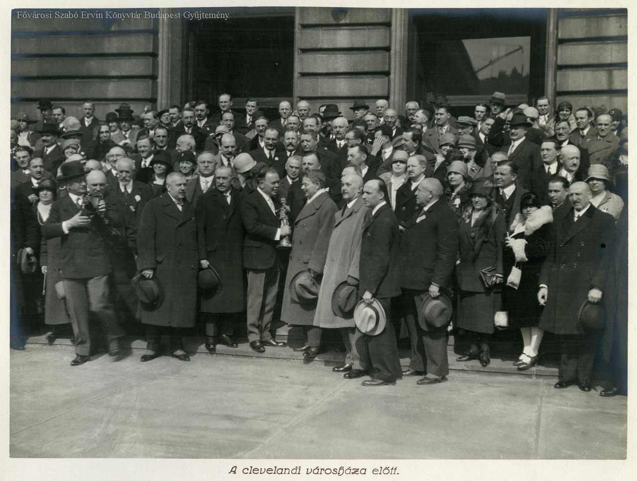 [A new york-i Kossuth-szobor avatására utazó budapesti küldöttség útja] a clevelandi városháza előtt