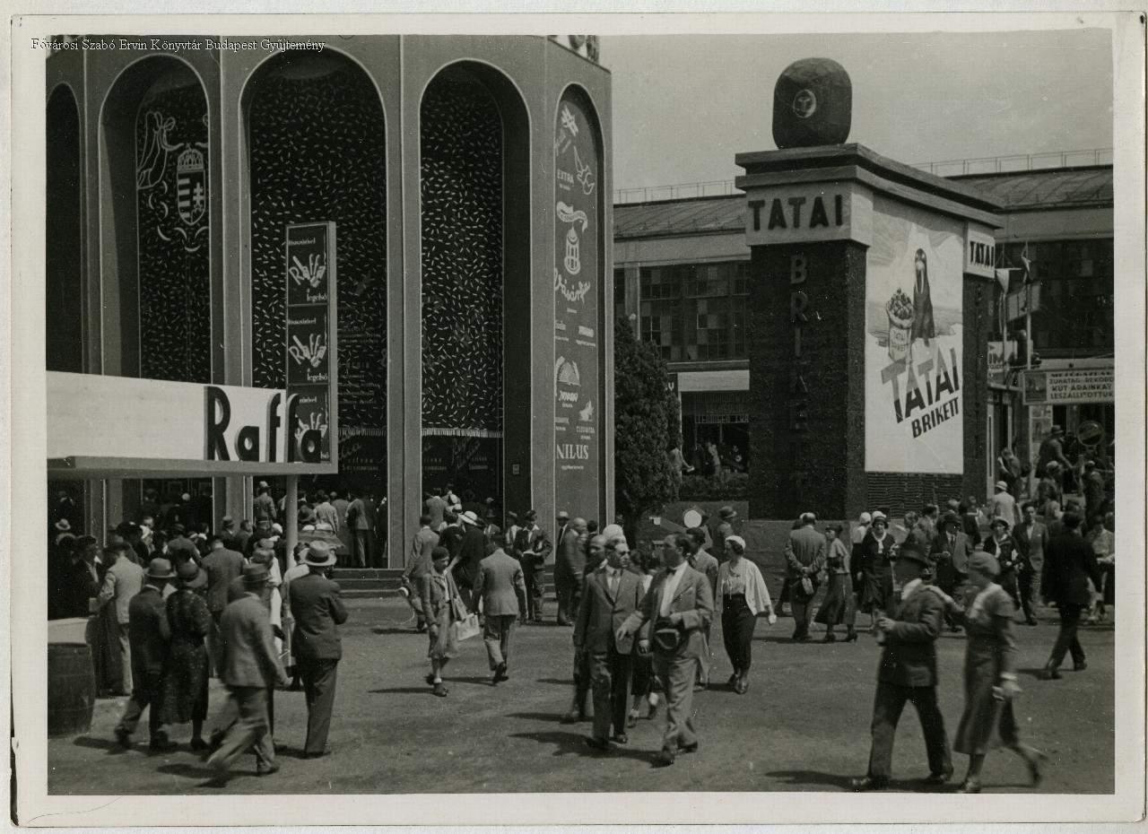 nemzetközi kereskedelem, vásár, árubemutató, kiállítás, reklám, pavilon, kiállítási épület, közönség, magyar címer, két világháború közötti időszak, 1934
