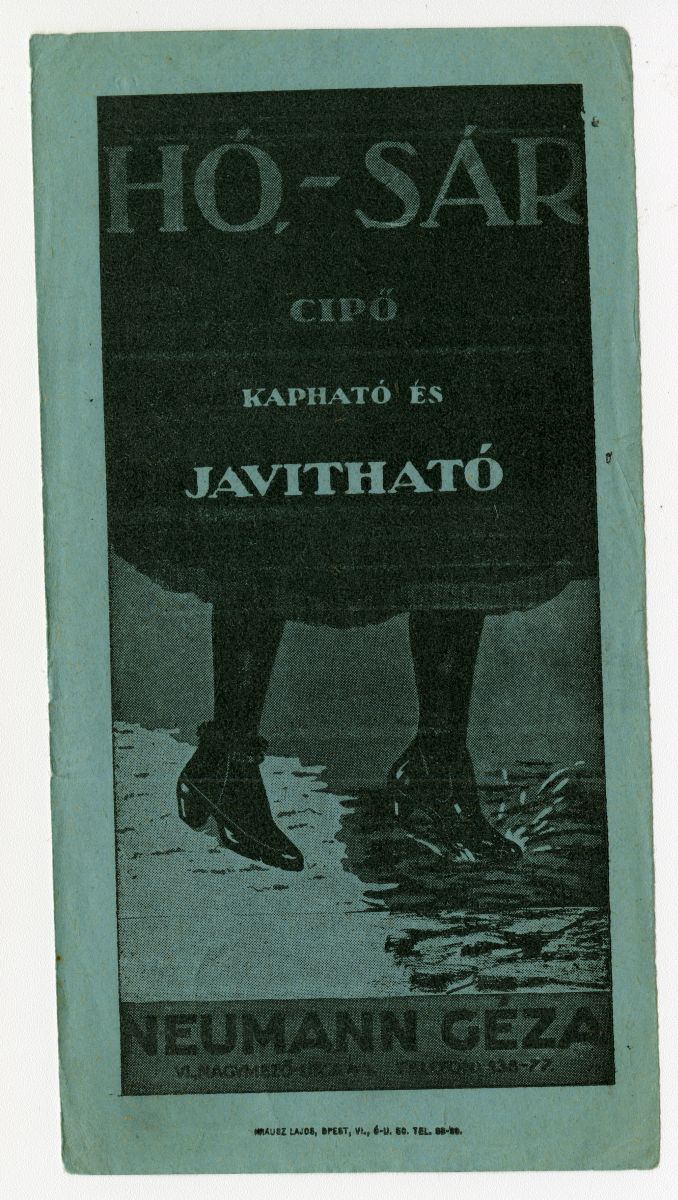 cipő, cipész, sárcipő, sár, hó, hócipő, láb, reklámnyomtatvány, kisnyomtatvány, aprónyomtatvány, számolócédula