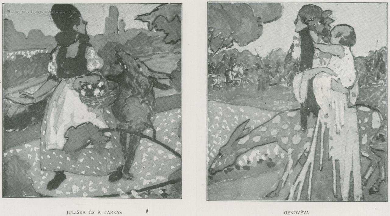 Vázlatok a Csata-utcai iskola freskójához : Juliska és a farkas, Genovéva Faragó Géza