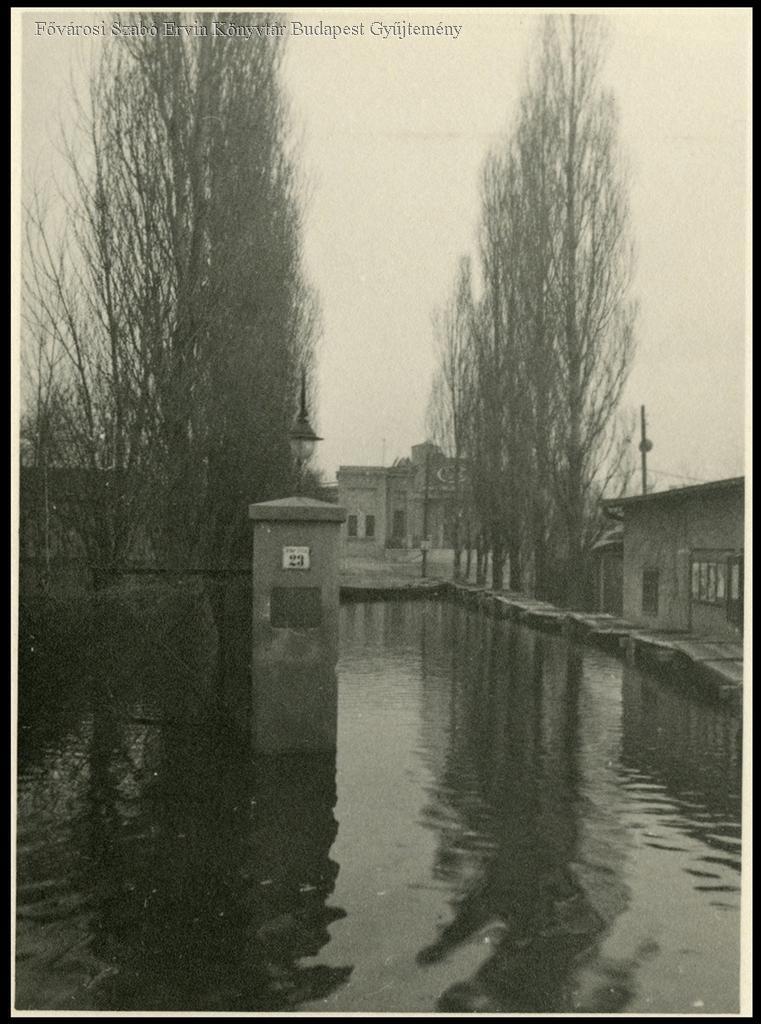 árvíz, tél, ipari épület, kapu, fasor, 1941
