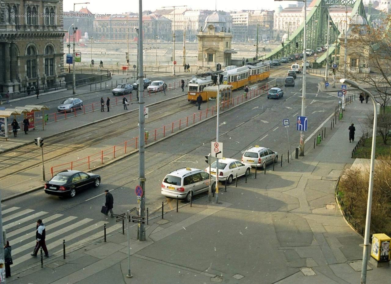 külső felvétel, épületkép, utcakép, ember, személygépkocsi, közúti villamos, 2000-es évek