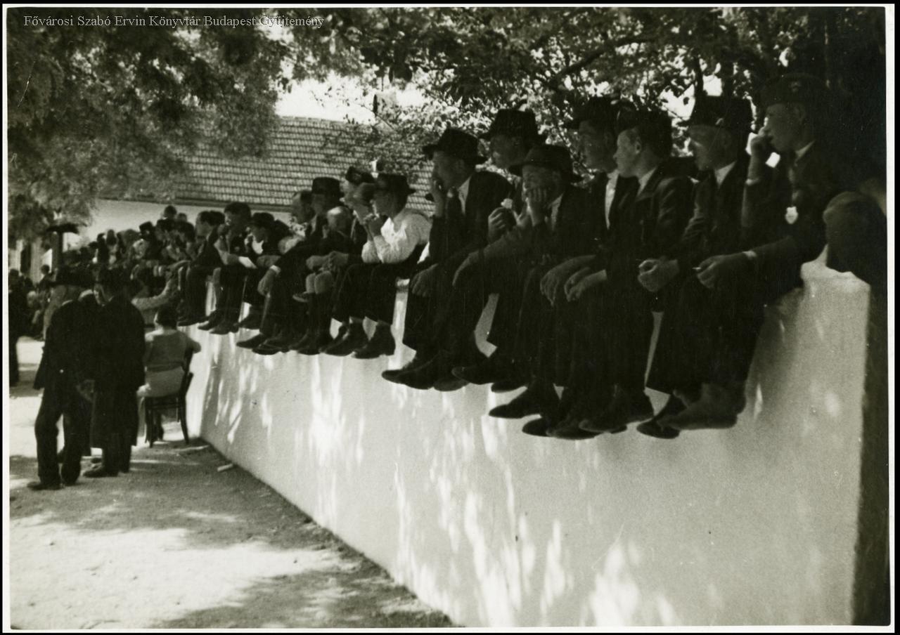 [Sváb legények nézik az úrnapi körmenetet Budaörsön]
