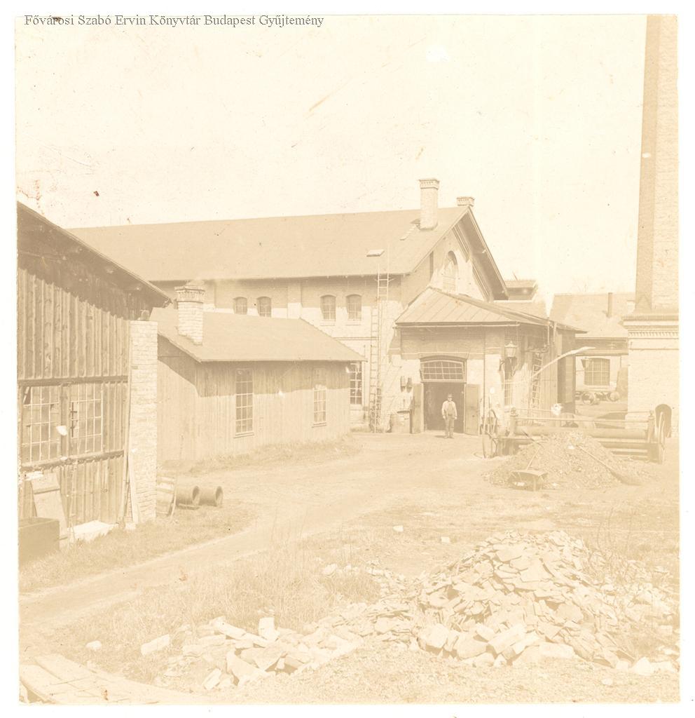 gépipar, ipari épület, műhely, udvar, kémény, épületkép, külső felvétel, 1910