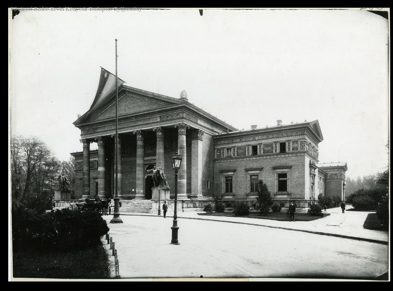 múzeum, szobor, lámpa, rendőr, fiáker, épületkép, külső felvétel, 1905 körül