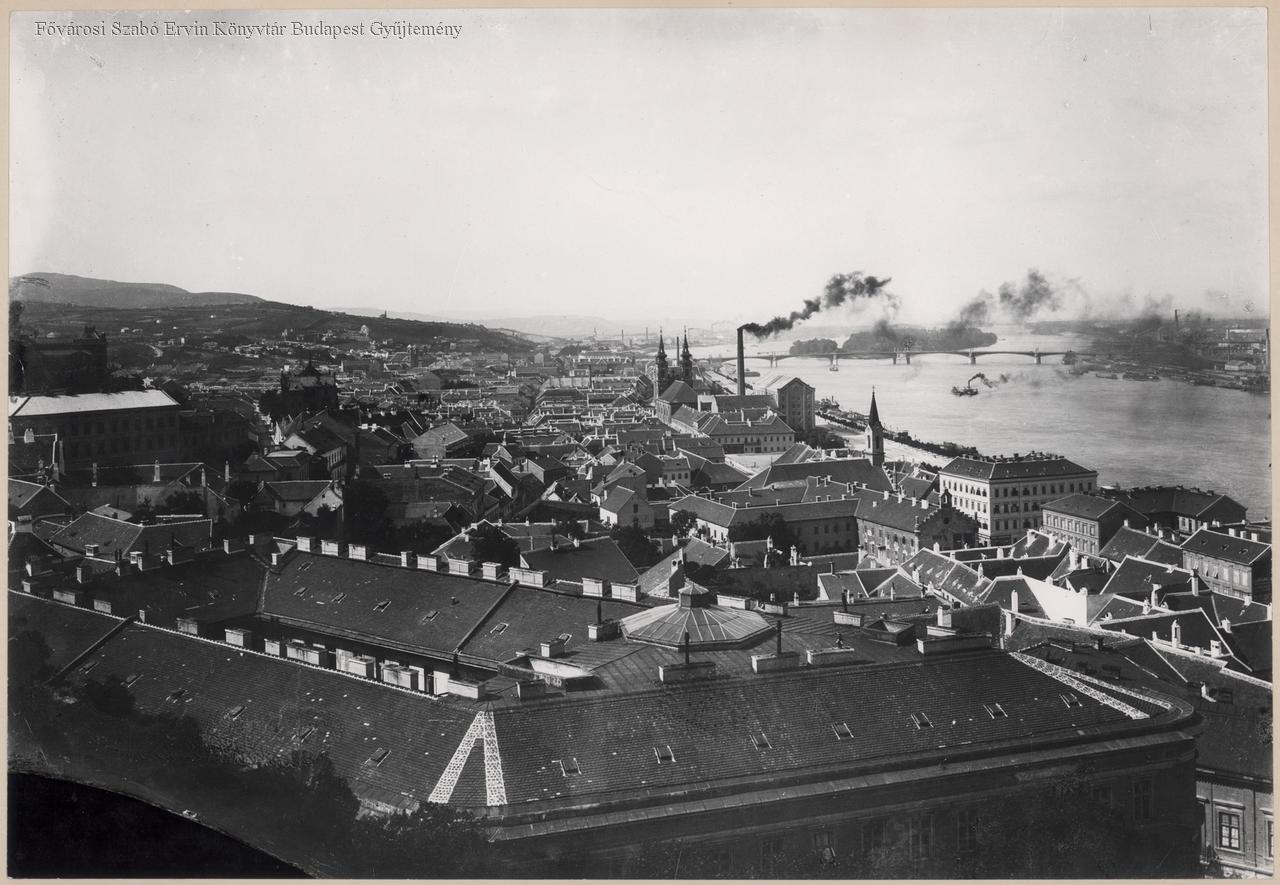 Kilátás a Várhegyről észak felé, a budai katolikus főgimnáziumtól a Lipótvárosig