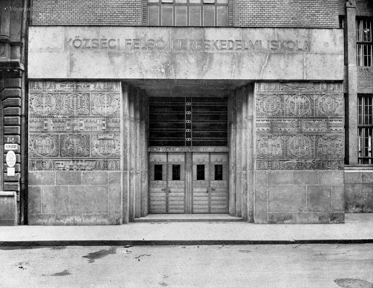 A Vas-utcai felső keresedelmi iskola, bejárat Lajta Béla /