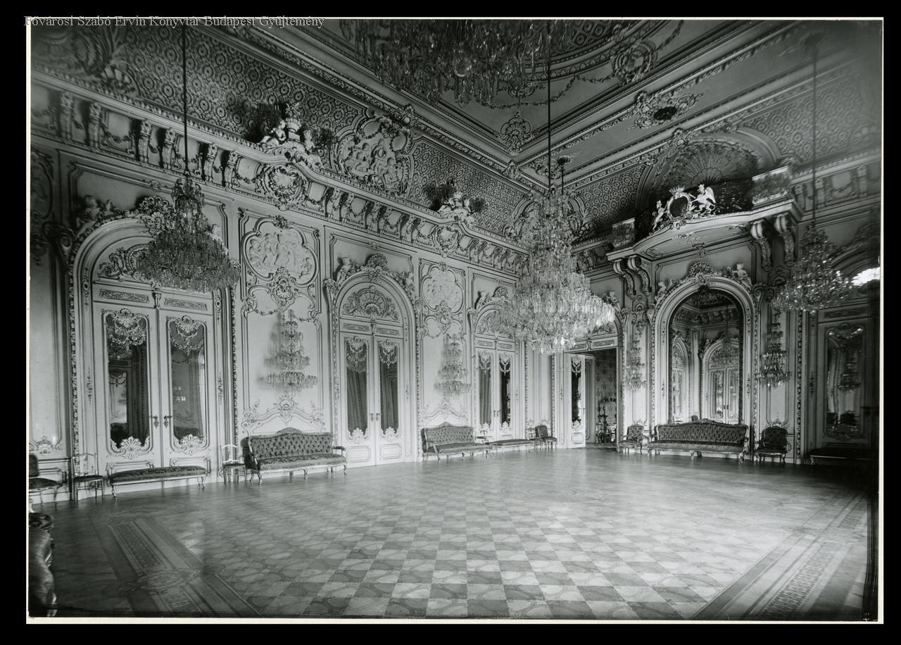 palota, arisztokrácia, lakberendezés, bálterem, kanapé, díszítés, padló, márvány, csillár, épületkép, belső felvétel, 1900 körül