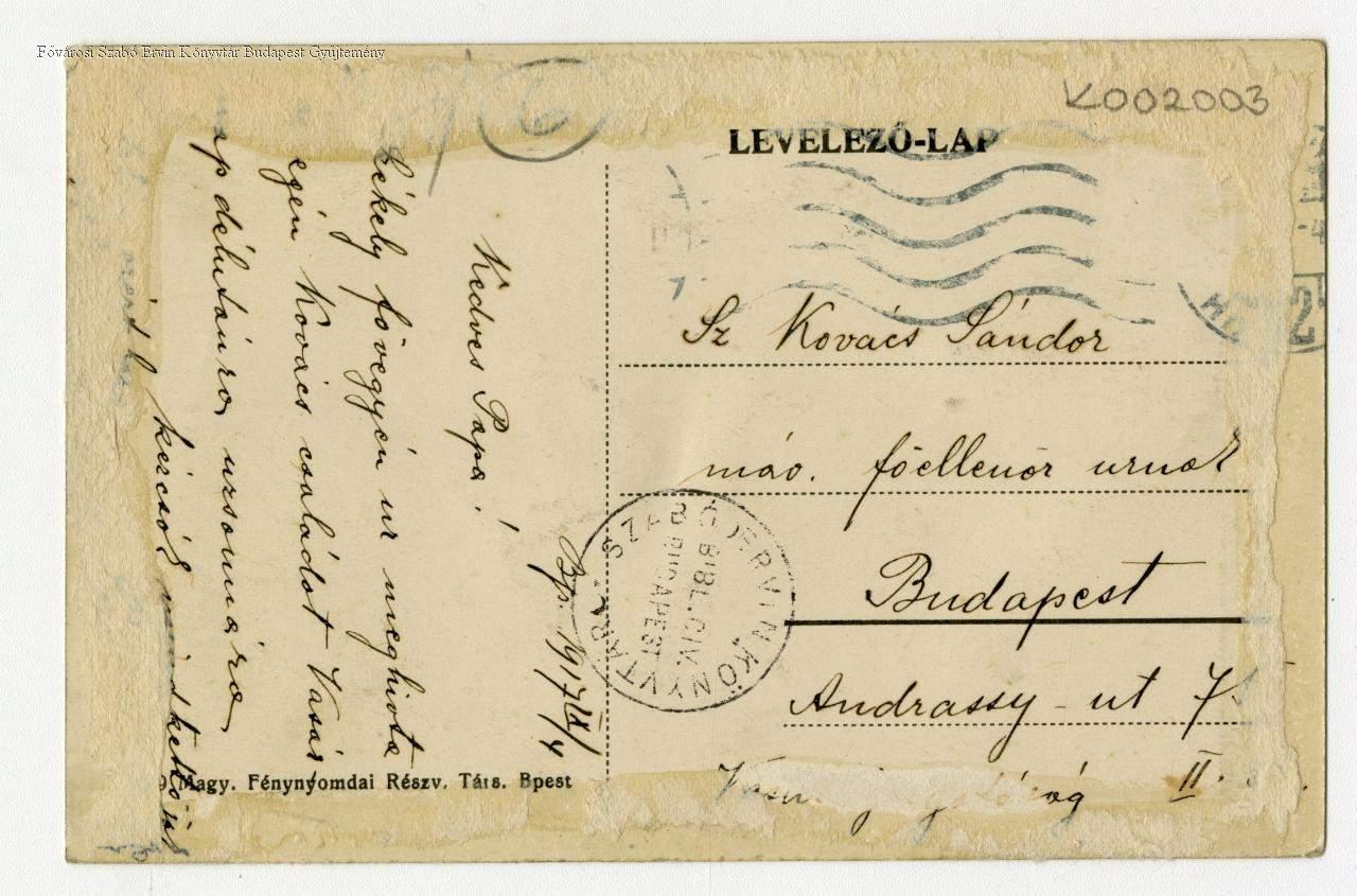 Országos m. kir. Chemiai Intézet II., Oszlop-utca : levelező-lap