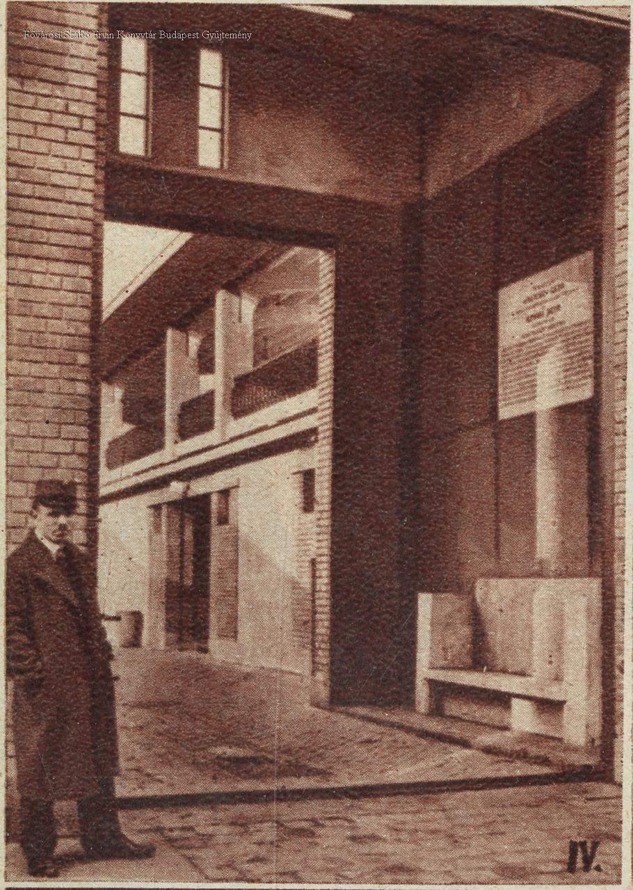 A székesfőváros Garay-téri modern új vásárcsarnoka tervezte Szabó Jenő okl. gépészmérnök [...] : főbejárat, háttérben az emeletes pavillonnal