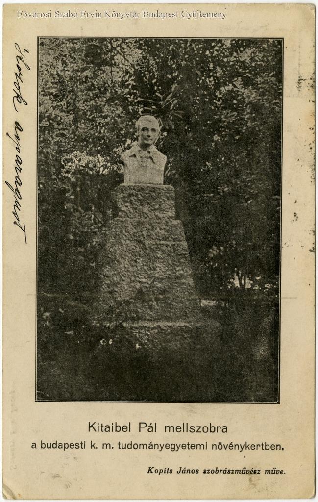 Kitaibel Pál mellszobra a budapesti kir. m. tudományegyetemi növénykertben Kopits János szobrászművész műve