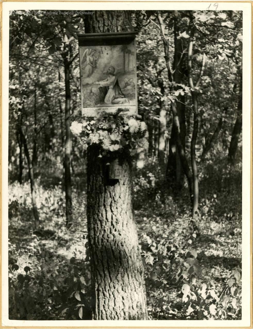 erdő, fatörzs, szentkép, vágott virág, külső felvétel, 1930-as évek