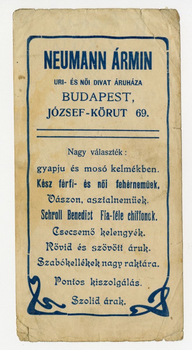 Cégnév:Neumann Ármin Úri- és Női Divat Áruháza
