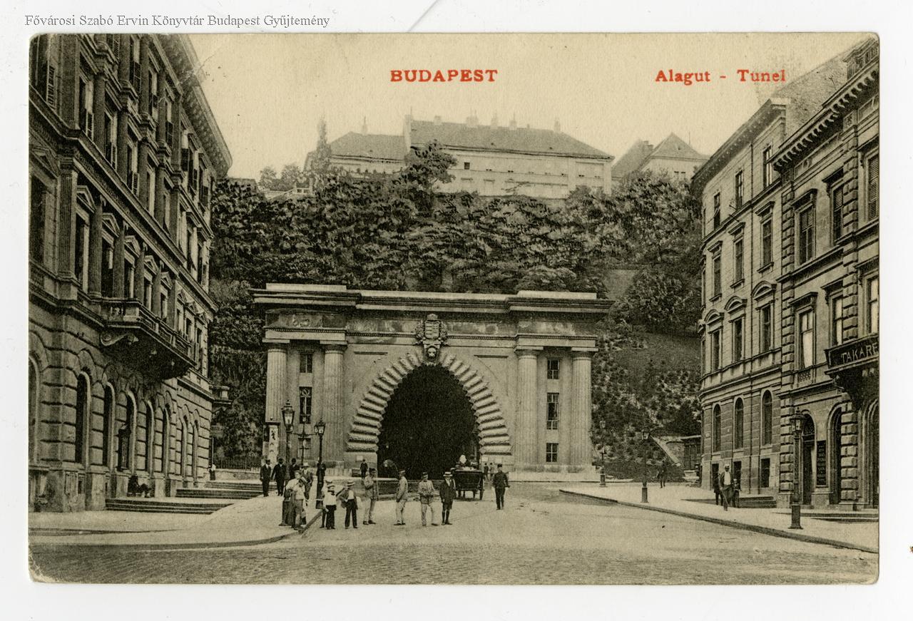 képes levelezőlap, alagút, középület, utcakép, 1900-as évek