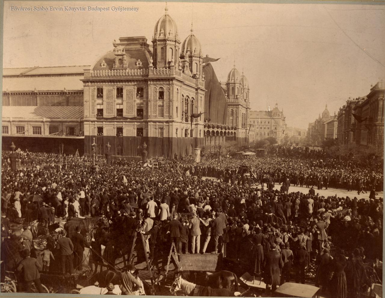 Tömeg várja Kossuth földi maradványait, az előtérben létrán álló bámészkodók