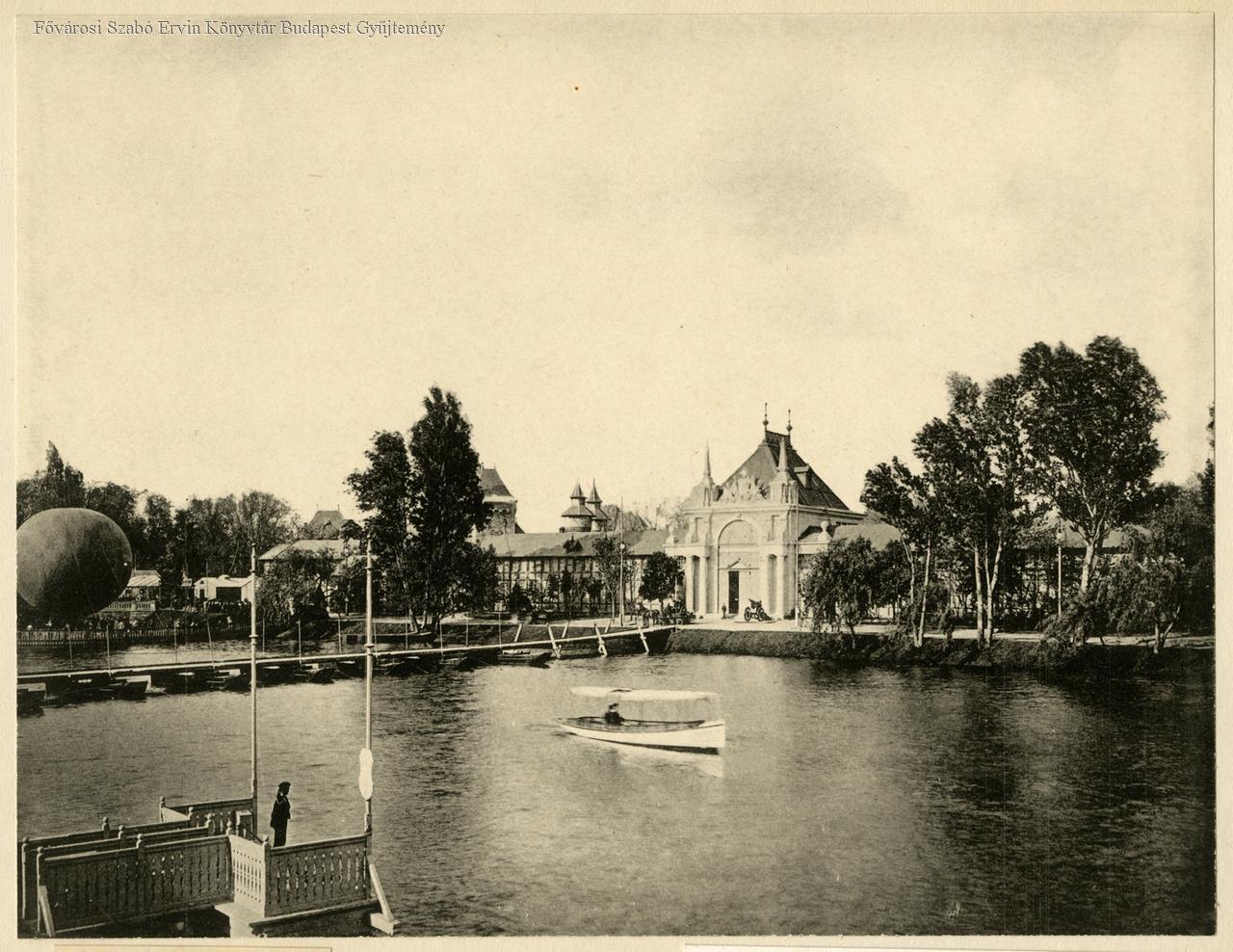 millennium, látkép, pavilon, kikötő, csónak, , léggömb, 1896