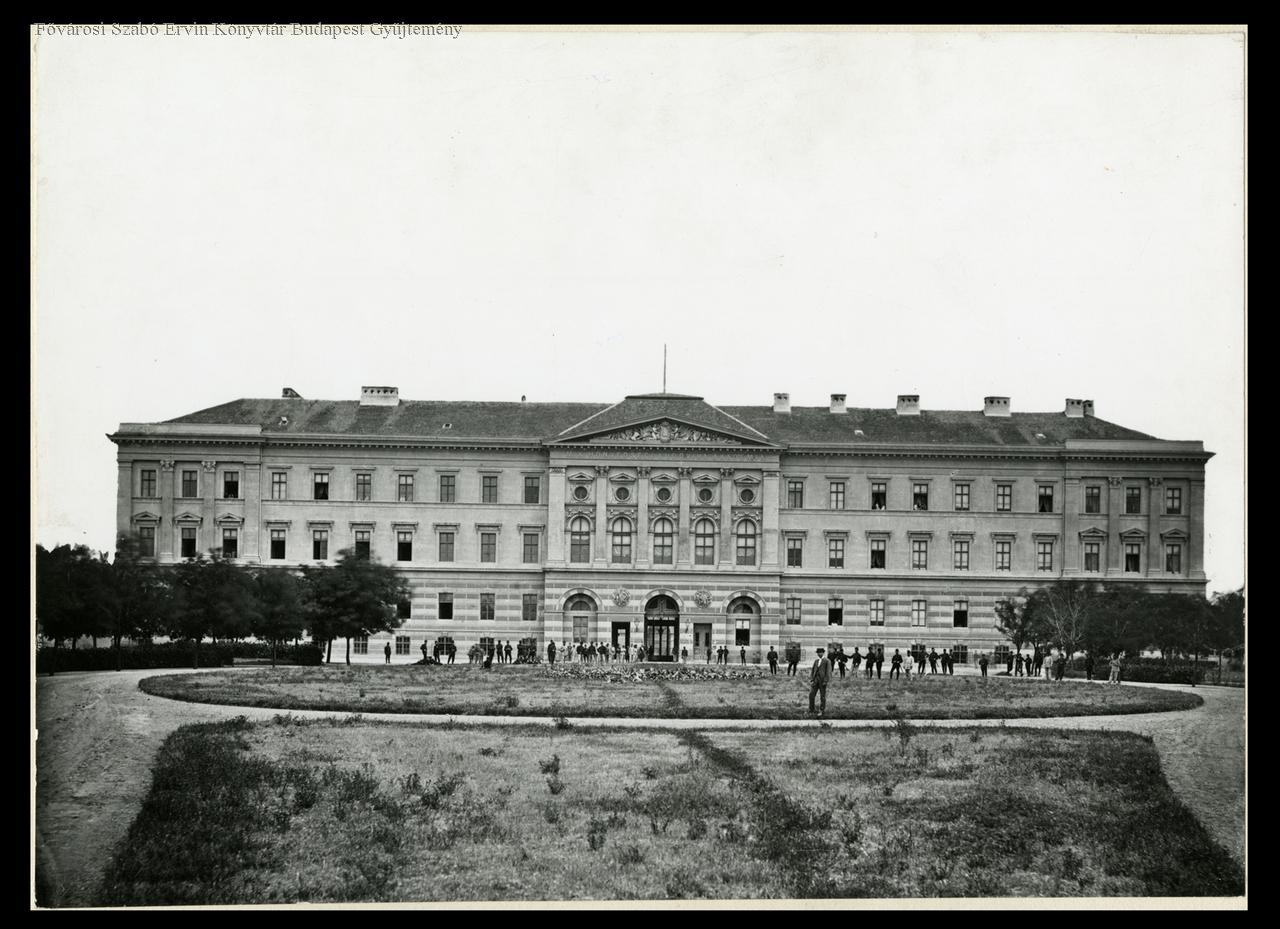iskola, katonatisztképzés, klasszicizmus, katona, park, épületkép, külső felvétel, 1880 körül