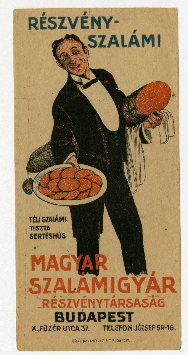 szalámi, sertés, hús, húsipar, húsáru, pincér, reklámnyomtatvány, kisnyomtatvány, aprónyomtatvány, számolócédula