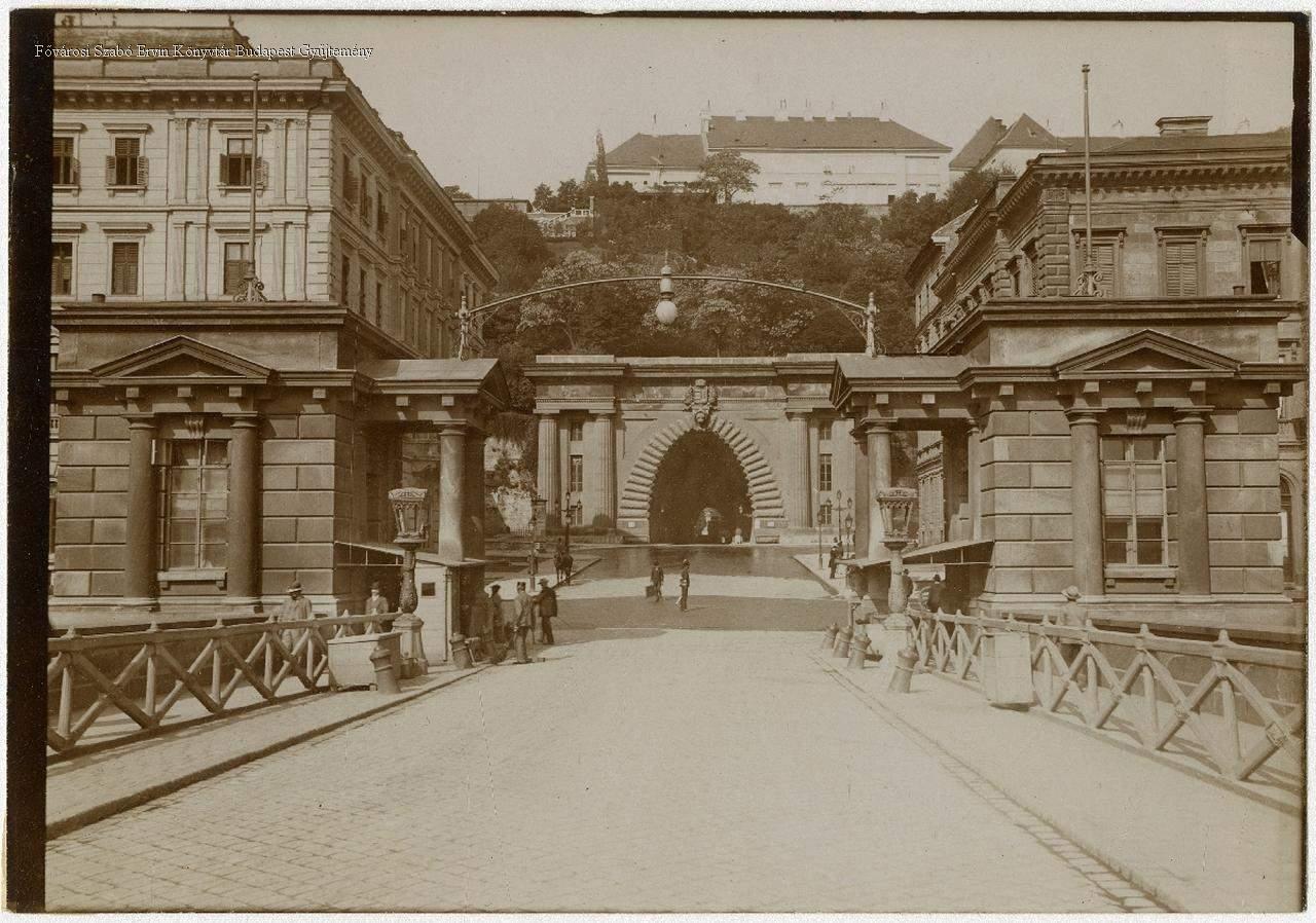 [Alagút a Lánchíd felől, széleken a vámszedőházak]