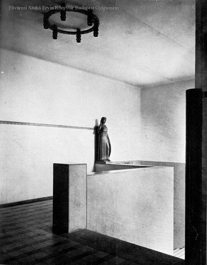 A Vas-utcai felső kereskedelmi iskola, lépcsőház - Moiret Ödön szoborműve Lajta Béla /