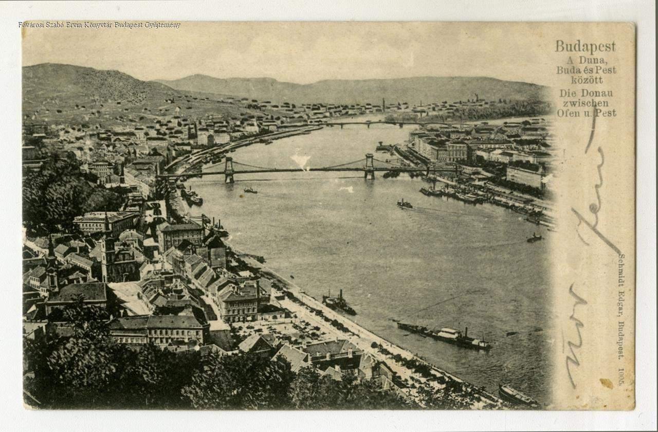 Budapest A Duna, Buda és Pest között = Die Donau zwischen Ofen u. Pest : levelező-lap