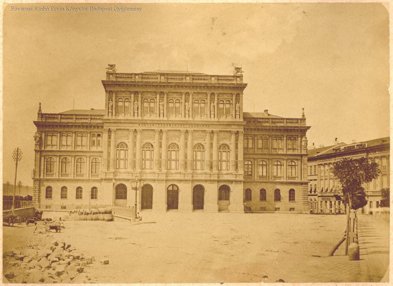 tudományos akadémia, épületfotó, homlokzat, külső felvétel, építés, tereprendezés, útépítés, kertépítés, 1865 körül
