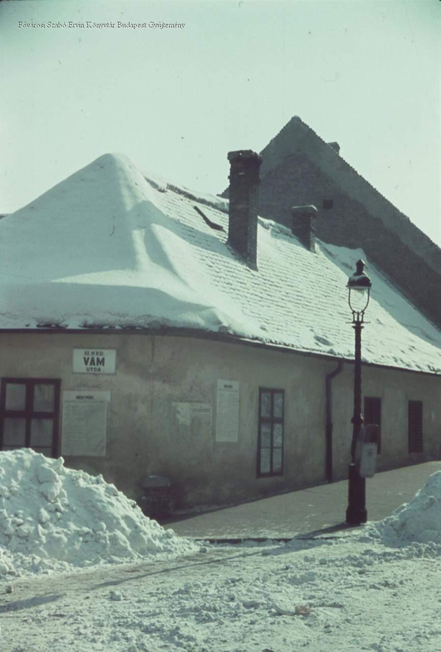 utcakép, lakóépület, lámpaoszlop, tél, hó, 1937-1944