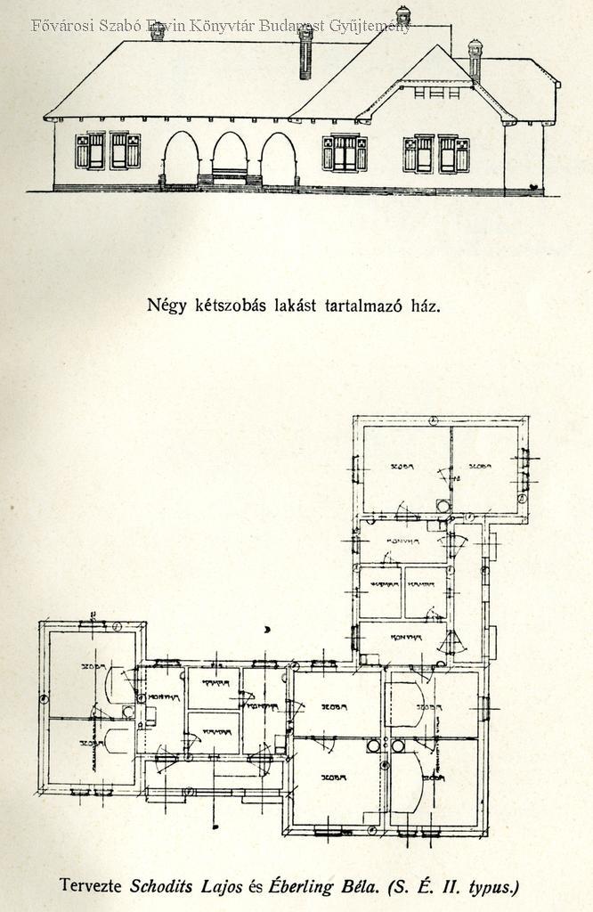 Két kétszobás lakást tartalmazó ház, tervezte Schodits Lajos és Éberling Béla [A kispesti Állami Munkástelep lakóházai]