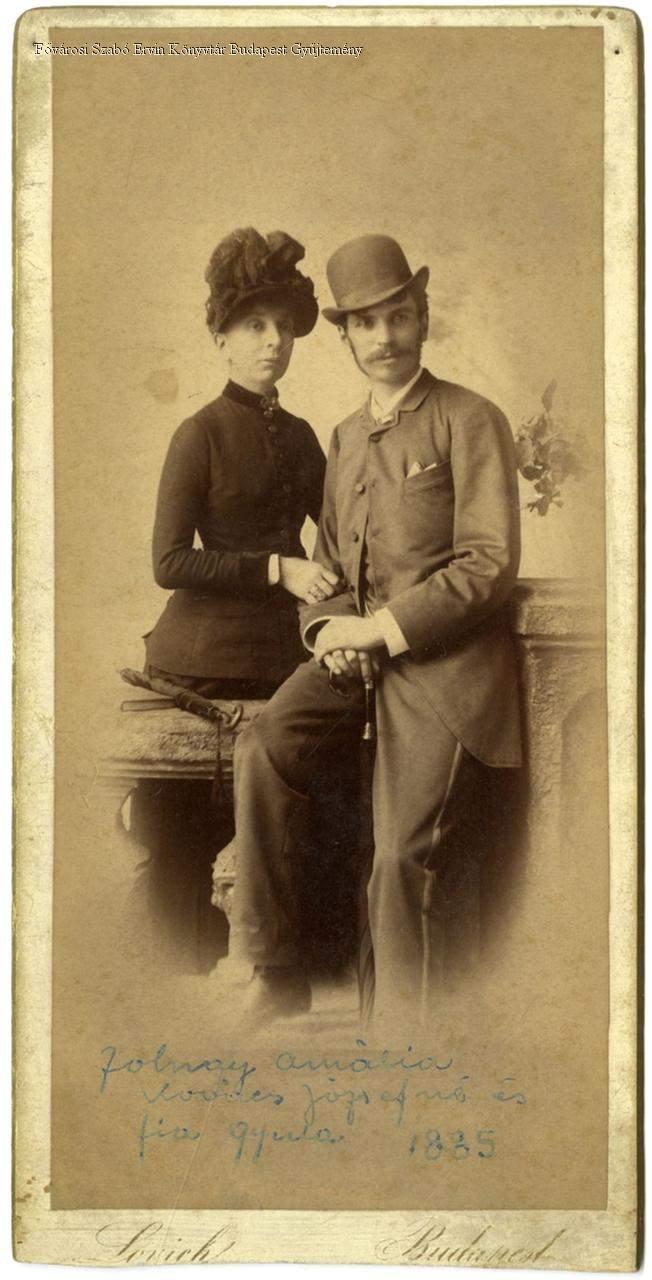 Kézzel írt felirat a képen:"Zolnay Amália Kovács Józsefné és fia Gyula 1885"