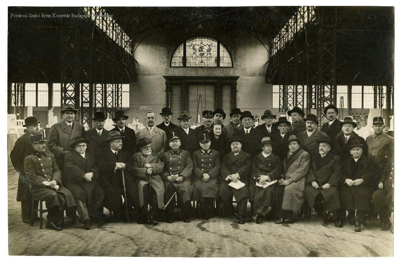 csoportkép, emlékmű, első világháború, katonaság, pályázat, bizottság, zsűri, csarnok, kiállítás, szobor, címer, fémszerkezet, üvegablak