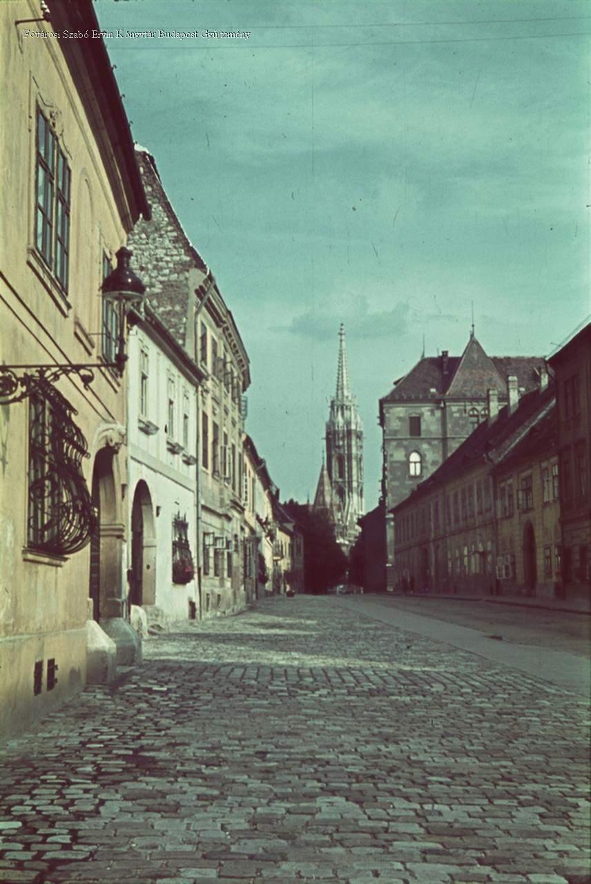 utcakép, lakóépület, épület, templom, torony, útburkolat, 1940. augusztus