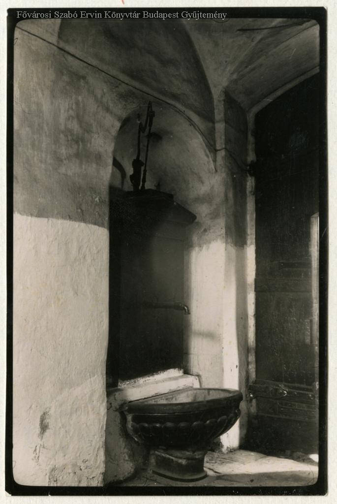 A kapualj jobb oldalán vörösmárvány kút, kő medencével, hátlappal. (Horler: Bp. műemlékei. 1. köt. p. 690.)